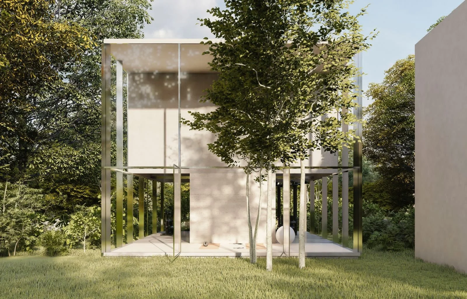 Gimnasio privado de diseño minimalista y moderno, inspirado en el Pabellón de Barcelona y desarrollado en colaboración con el despacho Vrtical. Su doble altura refuerza la sensación de amplitud, mientras que los ventanales de 360° ofrecen una vista panorámica ininterrumpida, integrando el entorno con el espacio interior.